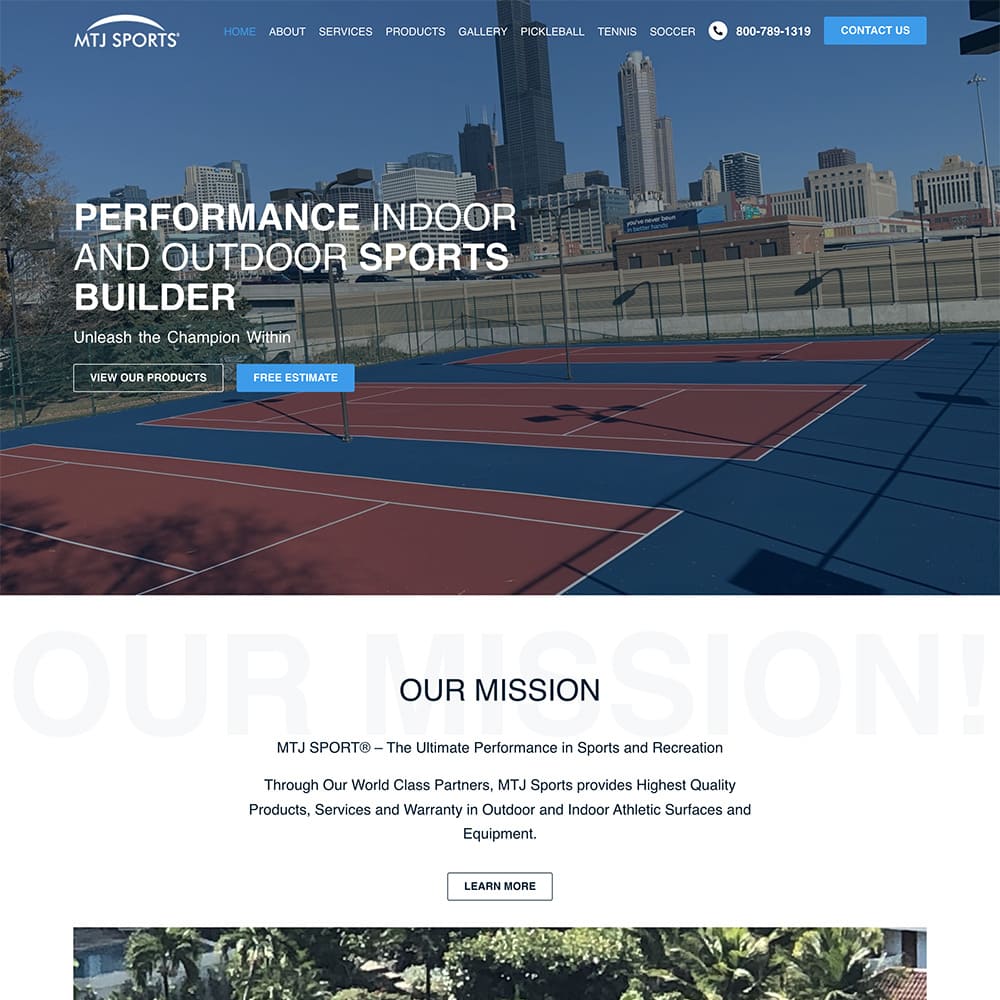 Client: MTJ SPORTS® Project: Development, Design URL: https://mtjsports.com/ MTJ SPORTS® offers an impressive portfolio of Indoor and Outdoor Performance Sports Surfaces
