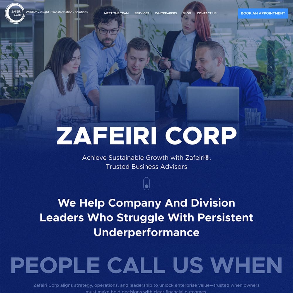 Client: Zafeiri Corp Project: Development, Design URL: https://zafeiricorp.com/ Zafeiri®, a trusted business solutions firm, works alongside companies to uncover hidden potential,